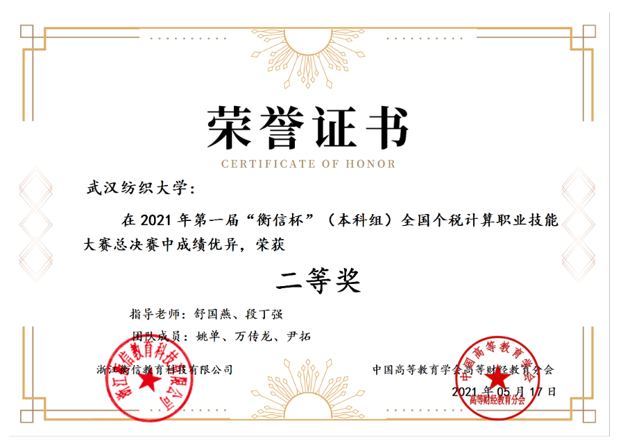 在全国总决赛中,太阳成集团tyc33455ccwww姚单、万传龙、尹拓同学在舒国燕、段丁强老师的带领下,与来自全国各地的138所学校、近370支决赛队伍、一千多名参赛选手进行激烈角逐,最终取得全国总决赛二等奖的优异成绩。舒国燕、段丁强老师被评为“优秀指导老师”。另外两组选手(队员:朱宝、李佩、汪响、邓竣豪、李梦馨、姜雯青)荣获华中赛区三等奖。个税在国家重大政策中持续发挥作用。新一轮个税改革涉及千家万户利益,对完善收入分配、增加居民收入、扩大消费发挥了重要作用,成为推进国家税收治理体系和治理能力现代化的成功实践。个人所得税体系有效发挥筹集财政收入、调节收入分配和稳定宏观经济的作用,并不断夯实社会治理基础。