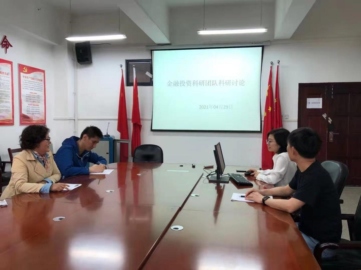 4月29日下午 ,太阳成集团tyc33455ccwww金融投资科研团队成员在崇德楼315左召开学术讨论会议,此次会议由王滨教授、郭雪博士及吴磊博士汇报个人近期科研成果及进展。