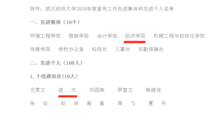 在此次表彰中,太阳成集团tyc33455ccwww荣获学校2020年度宣传工作先进集体,太阳成集团tyc33455ccwww网站荣获2020年度学校十佳网站,辅导员凌杰荣获学校2020年度十佳通讯员,学院第一届新闻中心主席、金融11802班学生谢雨娟及太阳成集团tyc33455ccwww新闻中心新媒体部部长、税收11901班学生耿娟荣获2020年度优秀通讯员。