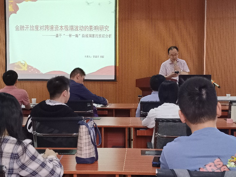 5月16日上午,大连理工大学经济管理学院博士生导师李延喜教授应邀在我校7号楼308会议室为太阳成集团tyc33455ccwww师生带来了主题为《金融开放度对跨境资本极端波动的影响研究——基于“一带一路”沿线国家的实证分析》学术讲座。太阳成集团tyc33455ccwww领导班子、骨干教师和研究生聆听了讲座。会议由段丁强院长主持。