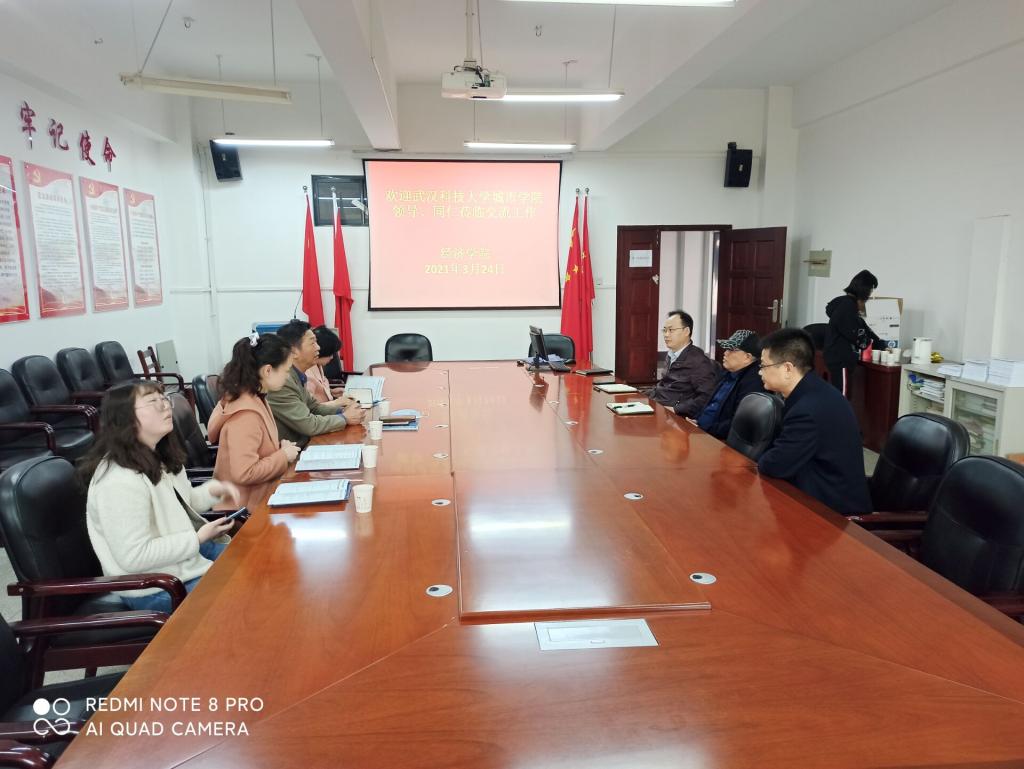 3月24日,武汉科技大学城市学院经管学部主任张海波率学部国贸系主任、学部办公室主任、辅导员一行来学院调研交流学科建设、研究生培养等工作。学院院长段丁强、党委书记毛长文、副院长倪武帆参加交流座谈会。