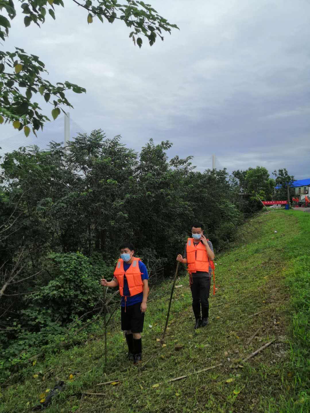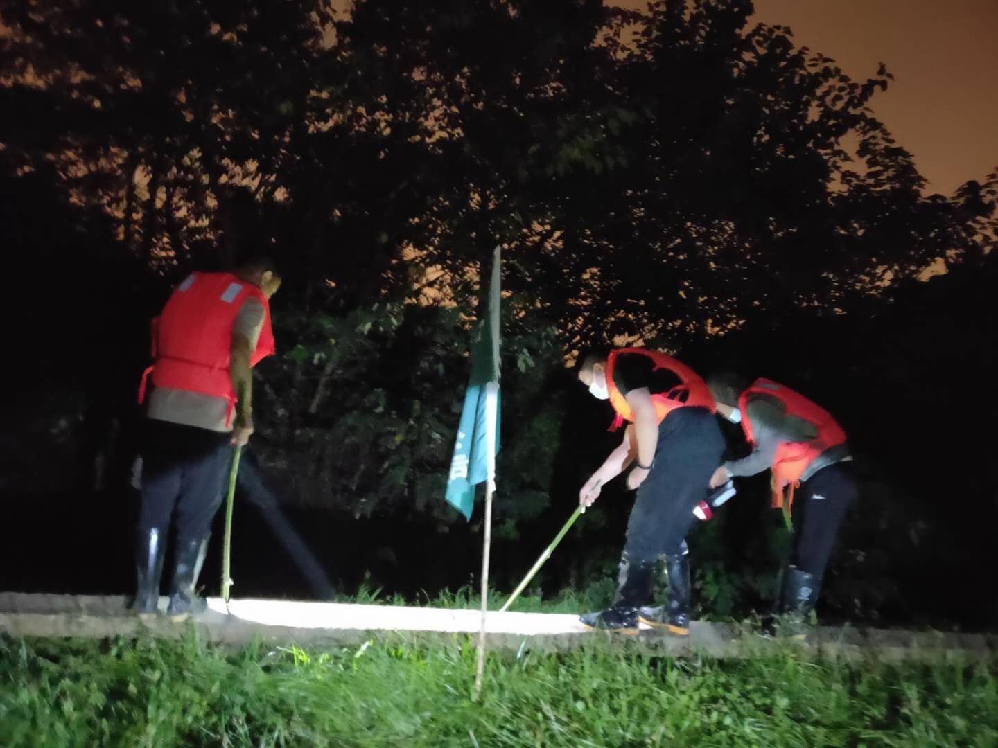 洪水翻滚、党旗飘扬。在学校防汛抢险指挥部的安排调度下,学院防汛抢险队员们分批分次登上武金堤学校防线段,迅速投入到防汛抢险巡查中,他们穿着雨衣和胶鞋,脚踩泥泞,手中紧握铁锹,三小时一班轮换,从深夜到凌晨,巡堤的日子里睡眠时间没有一次连续超过5小时的,但只要站上堤防线,看着一面面飘扬的旗帜,他们就聚起十二万分精神,全神贯注地盯着每一米防线,确保安全无虞。作为学校第三批防汛抢险突击队第一组组长,学院党委副书记黄俊鹏在参加防汛工作前线的三天里,体会过炎热与雨水交替,见过每个不同时间点的江边,“因为三小时一班轮转,所以基本上一天中每个时间段都会轮到一次。特别是在深夜,组员们往往容易疲惫,江水涨潮后,堤沿内外,蛇、刺猬等生物就出现的频次多,必须要时刻保持警惕,提醒组员们打起精神,注意脚下的路。”他坦言,在防汛巡堤的三天里,看着沿江段每一个驻点、每一面旗帜,都更加深刻的体会到了祖国的伟大和党员的使命。