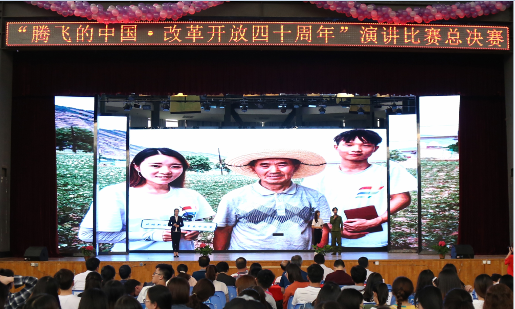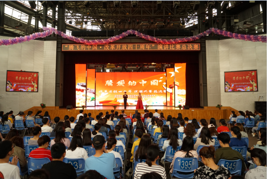 为庆祝改革开放四十年,根据湖北省教育厅关心下一代工作委员会《关于在全省青少年学生中开展“腾飞的中国——改革开放四十年”主题教育活动的文件精神要求,5月31日下午,由太阳成集团tyc33455ccwww关心下一代工作委员会主办,太阳成集团tyc33455ccwww党委、太阳成集团tyc33455ccwww关心下一代工作委员会承办的“腾飞的中国——改革开放四十年”演讲比赛总决赛在阳光校区大学生活动中心演播厅举行。校党委副书记、纪委书记、关心下一代工作委员会主任刘功成,湖北省教育厅关心下一代工作委员会常务副主任王宏毅,以及党委组织部、党委宣传部、党委学生工作部、离退休处等职能部门领导出席并担任活动评委。二级学院党委副书记、辅导员以及800余名学生代表观看了比赛。