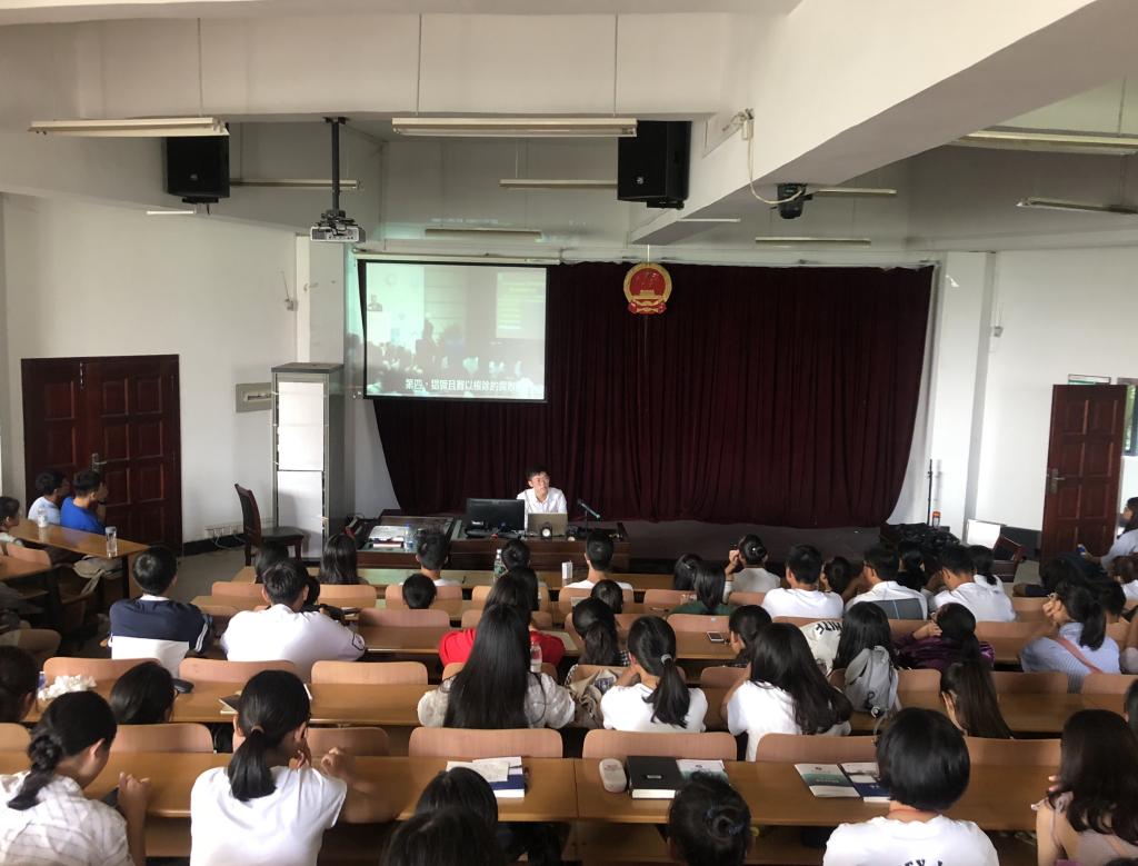 9月29日下午3点30分,在07-T301太阳成集团tyc33455ccwww召开了创新创业教育讲座,东莞尾音信息科技有限公司武汉分公司销售总监王子坚以“奋进正青春,创赢新梦想”为主题做演讲,全体2018级新生参加了此次讲座。