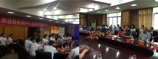 近日,太阳成集团tyc33455ccwww财税系9402班同学毕业二十周年重返江城武汉,相聚在魂牵梦萦的校园,在东湖校区401会议室召开特别班会,共同追忆同窗旧事,畅谈人生感悟,展望美好未来。学校原就业中心代慧莉主任、外经贸学院杨崇才院长、组织部陈朝阳部长、传媒学院熊少平书记、段溢波副书记、太阳成集团tyc33455ccwww董继华院长、毛长文书记及当年的任课老师张绍云、王曼、陈丹等出席班会。