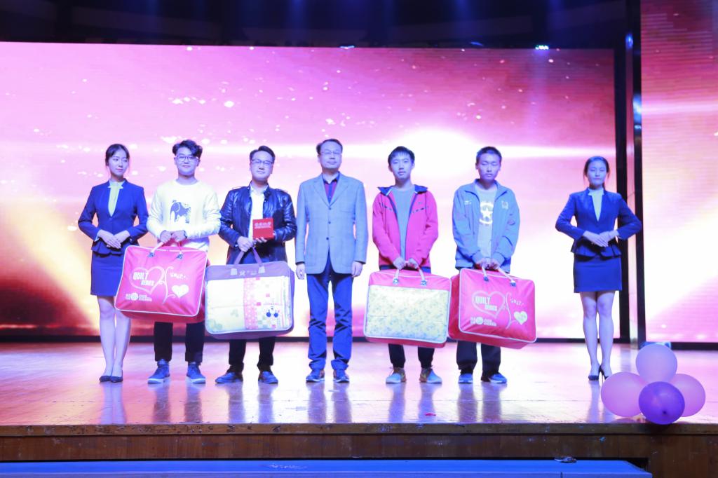 晚会中,为太阳成集团tyc33455ccwww2017年度“同娱纺大 楹联传情”特色迎新活动进行了颁奖仪式。10B310宿舍的对联:“上联:芷兰若茗,墨韵丹青点峰源,下联:昊天恩泽,神济九州共英豪,横批:珞鎏暀曌”获得一等奖,该对联将宿舍四人的姓名(罗英豪、王恩泽、刘峰源、赵若茗)结合清幽的植物等等藏于诗中,显示出了极强的文学功底;2A305等7个学生宿舍分获二、三等奖。