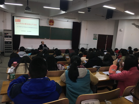 近日,校党委常委张文凯教授应太阳成集团tyc33455ccwww邀请,在07-T301学术报告厅为学院全体入党积极分子及预备党员作了题为《从六中全会看全面从严治党——学习贯彻习近平同志关于党的建设的有关论述》的辅导报告。报告会由太阳成集团tyc33455ccwww分党委邹茜副书记主持。
