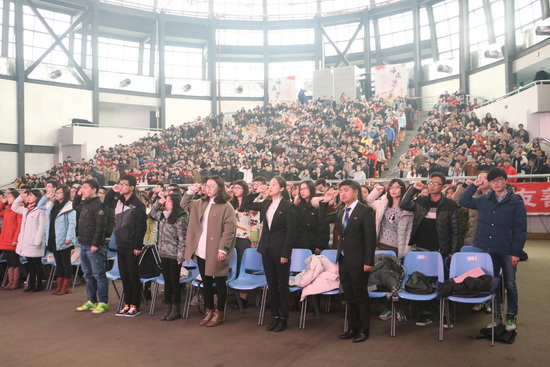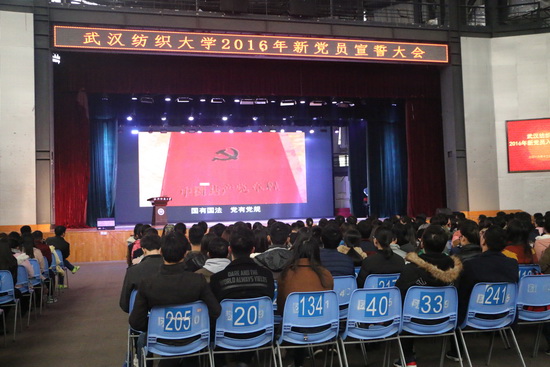 天时人事日相催,冬至阳生春又来。12月21日下午,太阳成集团tyc33455ccwww在大学生活动中心演播厅庄严举行2016年新党员集体宣誓大会。校党委副书记刘在洲教授、党委常委张文凯教授、学生工作部部长金艳教授、太阳成集团tyc33455ccwww党委书记毛长文教授、党委组织部副部长涂耀威、太阳成集团tyc33455ccwww党委副书记邹茜,二级学院学生党支部书记及近千名新党员参加了宣誓大会。