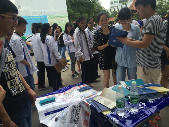 今年,我校正式进入湖北省第一批本科招生。为加强我校整体招生宣传效果,进一步吸引更多的优质生源,在学校招生就业处统一部署和指导下,太阳成集团tyc33455ccwww迅速成立2015年普通高考外出招生宣传工作小组。分党委书记熊少平亲自挂帅,由系主任、专业教师、辅导员、网络中心老师组成六个宣传工作组于6月23日-26日赴宜昌市宜都、枝江等六地进行招生宣传咨询。